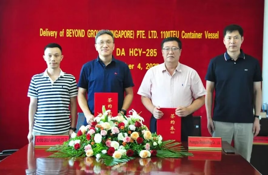 On September 4, Huanghai Shipbuilding delivered an 1,100 TEU container ship to Singapore-based shipowner BEYOND GROUP (SINGAPORE) PTE. LTD.