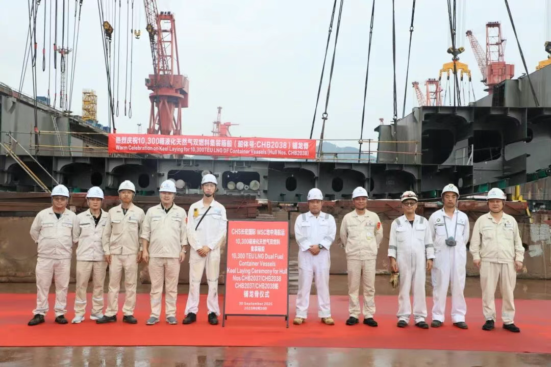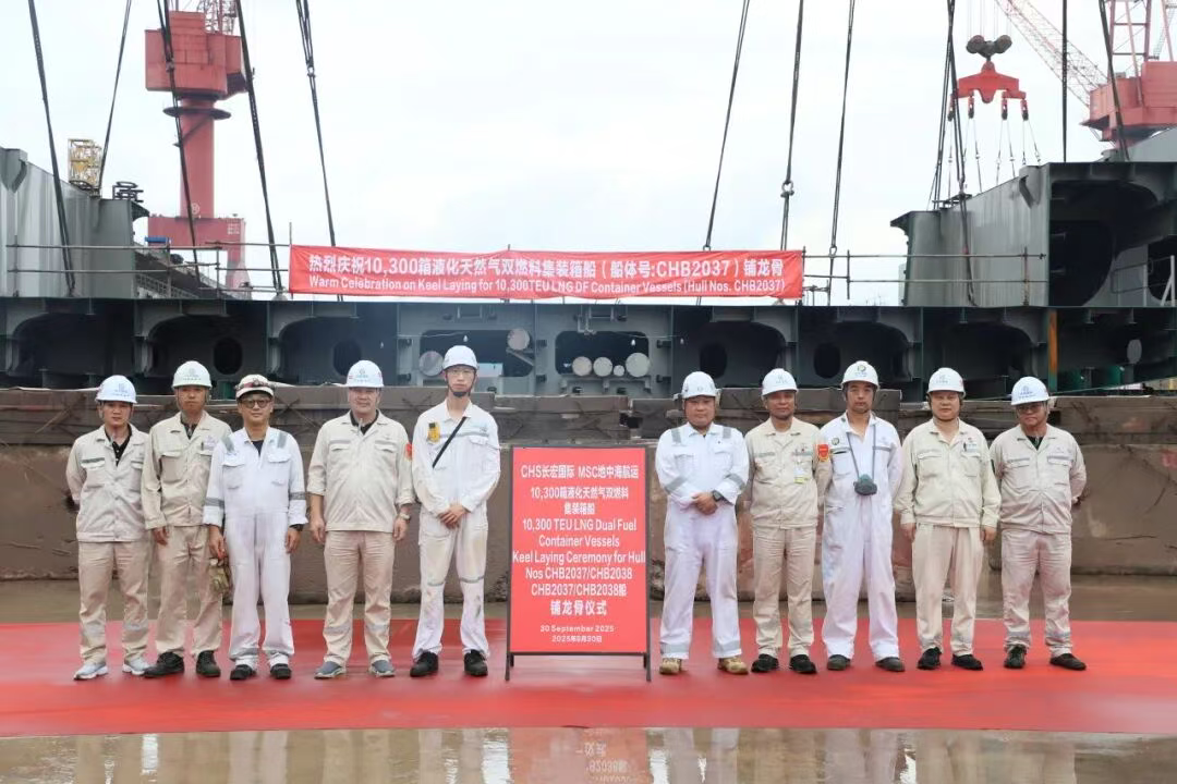 Recently, Chinese shipbuilder Changhong International successfully held the keel-laying ceremony for the first two 10,300 TEU LNG dual-fuel container ships (CHB2037/CHB2038) ordered by MSC. This marks the official transition of the series’ construction into the critical docking phase, laying a solid foundation for the project’s subsequent smooth progress.