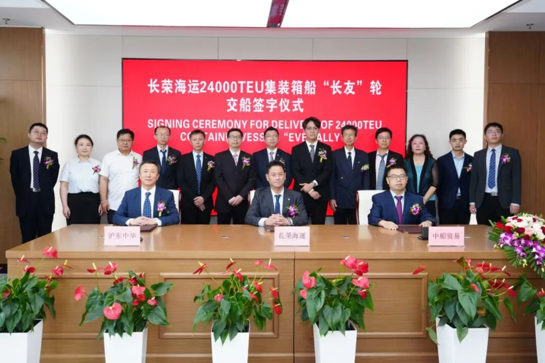 At the vessel delivery ceremony, Liu Xuedong, Evergreen Marine’s factory representative and deputy general manager of Changxing Shipyard, and Xiong Kechao, senior project manager of the 1st Marine Business Department of China Shipbuilding Trading Co., Ltd. (CSTC), signed the delivery documents on behalf of their respective parties.