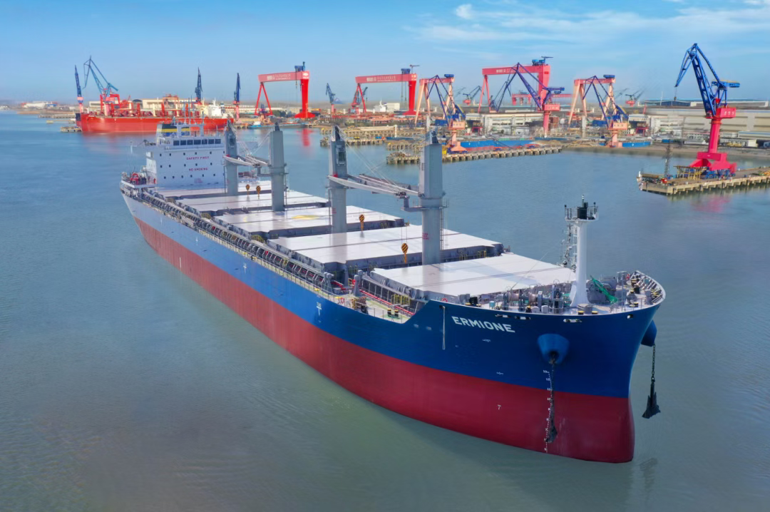 The ERMIONE is the third ship in this series built by Sumec Marine for Greece’s BMC Shipping. This ship type features an optimized shallow draft design to maximize cargo capacity, meets the latest environmental regulations, offers lower fuel consumption, and is equipped with a crane for self-loading and unloading capabilities, providing customers with competitive transportation solutions.