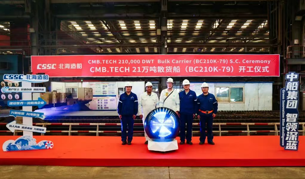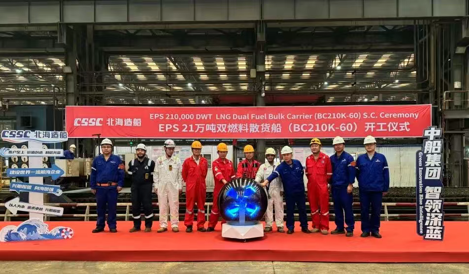 On October 10, Beihai Shipbuilding of China State Shipbuilding Corporation held a steel cutting ceremony for Singapore EPS’s 210,000 DWT LNG dual-fuel bulk carrier project and Belgian CMB.TECH’s 210,000 DWT bulk carrier project.