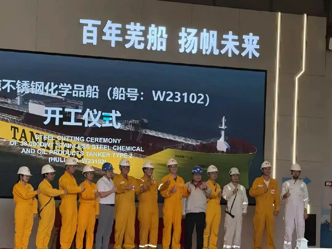 On October 10, China-headquartered shipbuilder Wuhu Shipyard reached a key milestone in the construction of the second 38,000 DWT stainless steel chemical tanker for internationally renowned shipowner Stolt: the first steel plate was successfully cut, marking the project’s official entry into the construction phase.