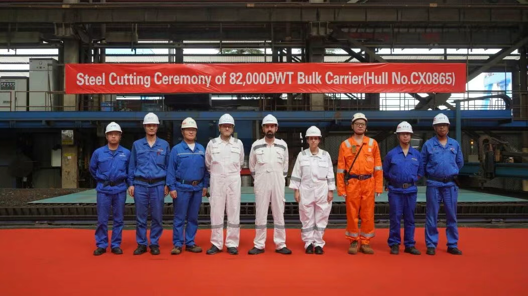 On October 15, CSSC Chengxi Shipyard, a subsidiary of China State Shipbuilding Corporation (CSSC), successfully held a steel cutting ceremony for an 82,000 DWT bulk carrier in the “Blue Whale” series independently developed for W Marine at its headquarters.