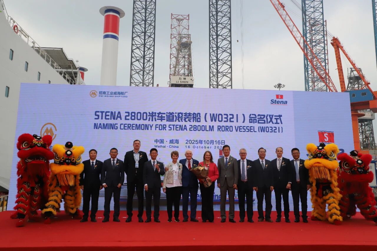 On October 16, China Merchants Industry Weihai Shipyard held a naming ceremony for the STENA CONNECTA, another state-of-the-art multi-energy Ro-Ro vessel built for global ferry giant Stena Group. This milestone signifies an international shipping industry endorsement of this world-leading giant vessel.