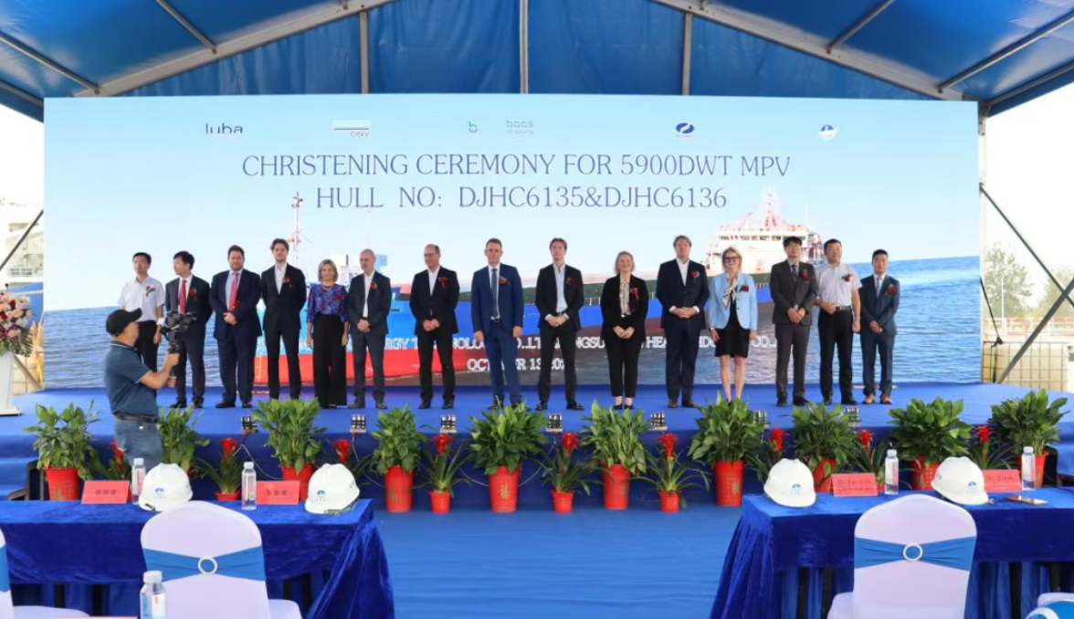 Recently, Bestway Marine & Energy Technology’s wholly-owned subsidiary, Jiangsu Dajin Heavy Industry, held a grand naming ceremony for the twin 5,900 DWT multi-purpose dry cargo vessels. The two newbuildings were named “BELTMAR” and “BOTHNIAMAR,” respectively.