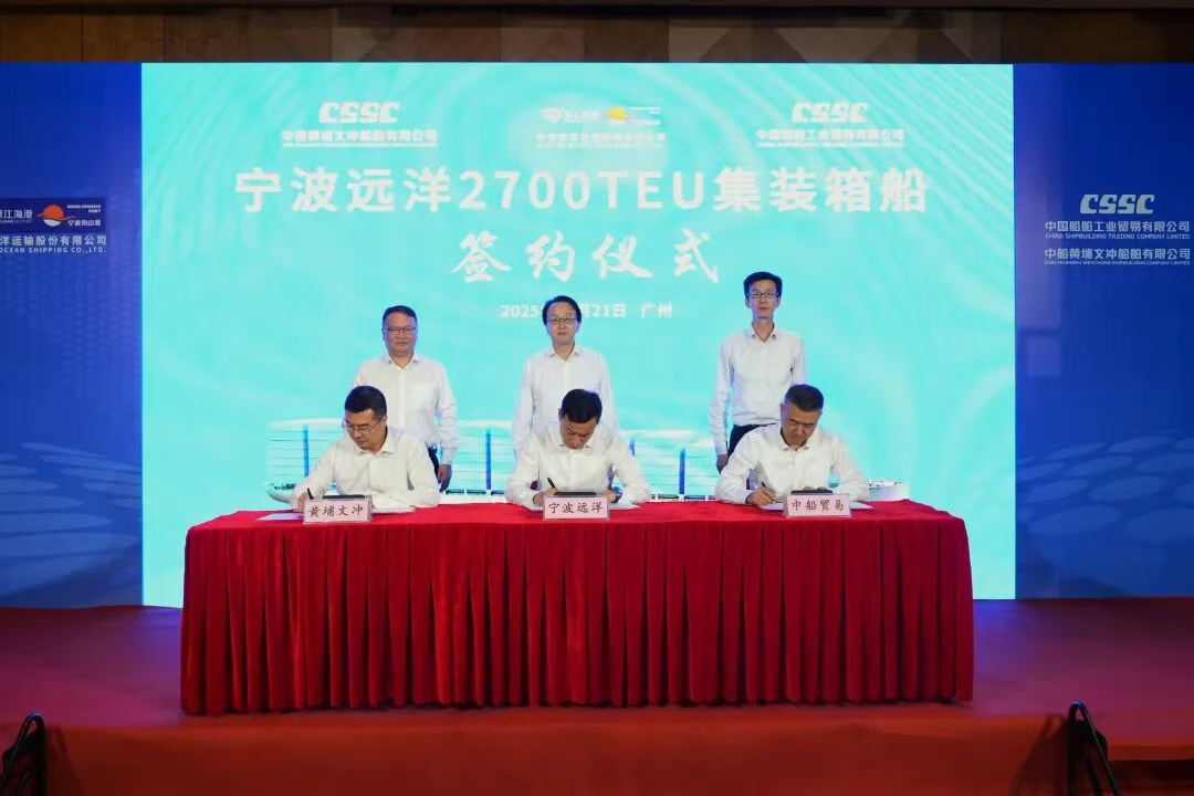 On October 21, China Shipbuilding Industry Corporation (CSSC) Huangpu Wenchong Shipbuilding, together with China Shipbuilding Trading Co. Ltd (CSTC), signed a contract with Ningbo Ocean Shipping for the construction of four 2,700 TEU container ships.