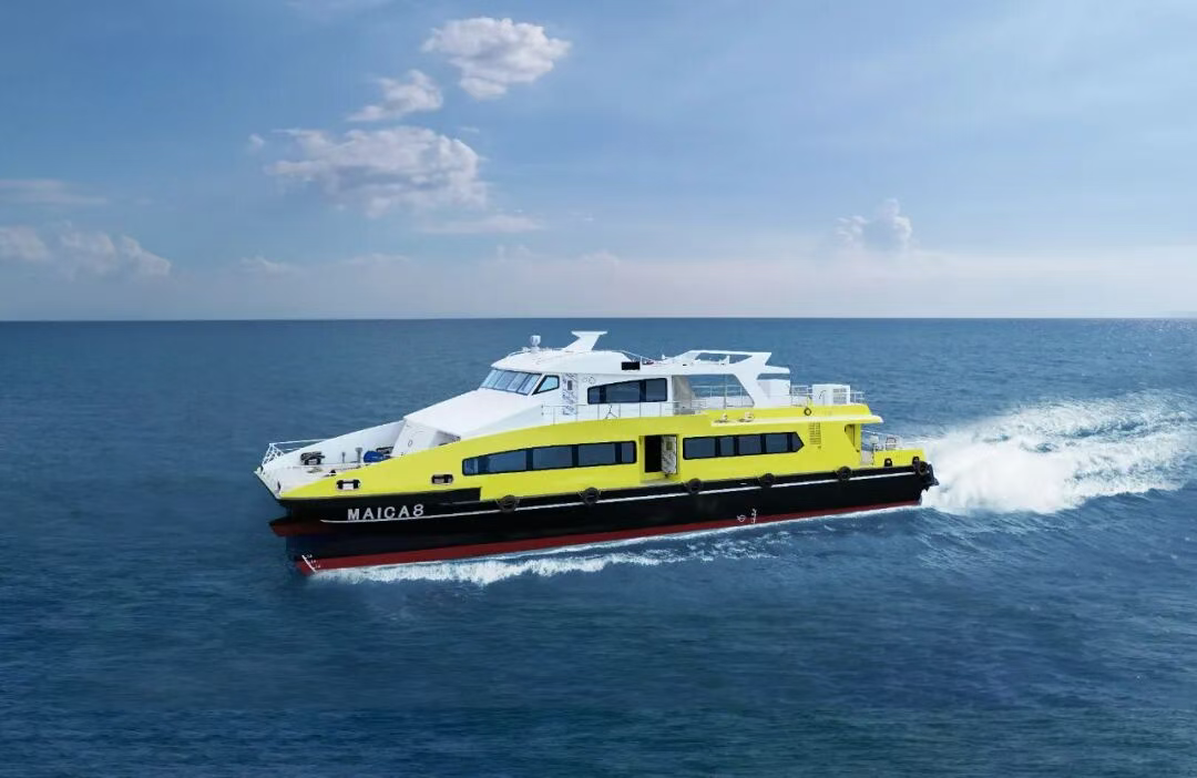 The 32-meter catamaran passenger ferries contracted this time are high-performance vessels specially designed by Jianglong Shipbuilding for the Southeast Asian market. Featuring an aluminum-glass composite hull structure, the vessel measures 32 meters in overall length, 9 meters in beam, and 3.3 meters in draft, with a top speed of 26 knots. It balances practicality with fuel efficiency, making it fully suited to the geographical conditions and operational requirements of Southeast Asia.