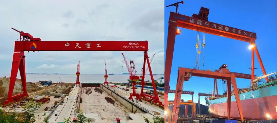 The 1,000-ton gantry crane not only offers exceptional load-bearing capacity but also features an ultra-large span of over 200 meters, making it fully capable of meeting the hoisting requirements for large ship segments. This enhances the efficiency and flexibility of large component lifting operations at the client’s site.