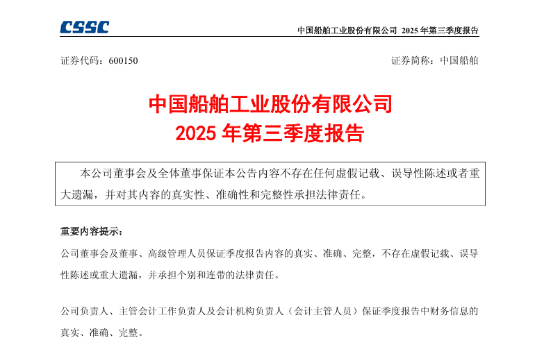 On October 28, China CSSC Holdings Limited (CSSC) released its Third Quarterly Report 2025.