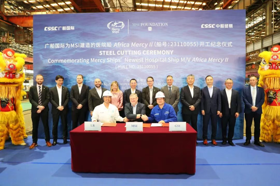 On October 29th, China State Shipbuilding Corporation (CSSC) Guangzhou Shipbuilding International (GSI) officially broke ground for the MSI hospital ship project for Mercy Ships International (hereinafter referred to as “Mercy Ships”), an international charitable organization.