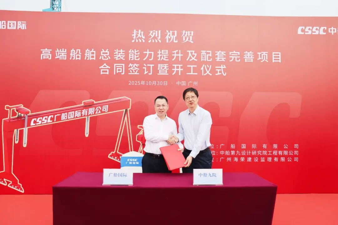 On October 30, China State Shipbuilding Corporation’s Guangzhou Shipyard International (GSI) and CSSC Ninth Design & Research Institute(CSSC NDRI) signed a contract for the project to enhance high-end ship final assembly capabilities and improve supporting facilities.
