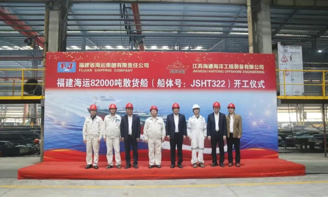 On October 30, Jiangsu Haitong Offshore Engineering Equipment Co.,Ltd.(JSHT) successfully kicked off the construction of an 82,000 DWT bulk carrier (Hull No.: JSHT322) for Fujian Shipping Company.