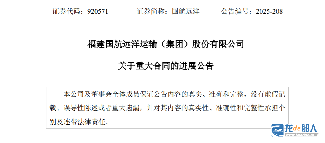Recently, Guohang Ocean Shipping released a progress report on a major contract, stating that its board of directors has approved a resolution to terminate the construction contract for two 73,800 DWT bulk carriers. This means that Guohang Ocean Shipping has voluntarily terminated the order for two 73,800 DWT bulk carriers.