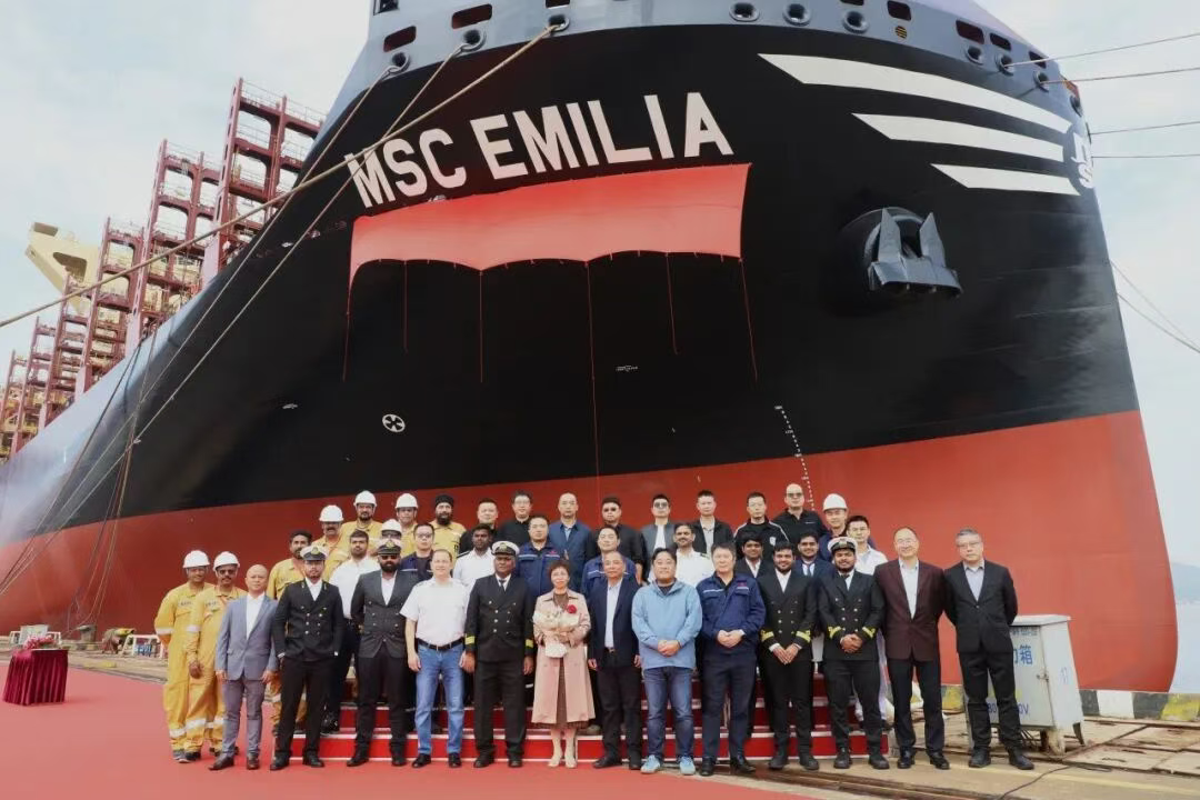 On November 8, the 11,500 TEU LNG dual-fuel container ship “MSC EMILIA”, built by Zhoushan Changhong International for Mediterranean Shipping Company (MSC), was successfully christened. On the afternoon of November 10, both parties signed the delivery documents via video conference, completing the formal delivery of the MSC EMILIA.