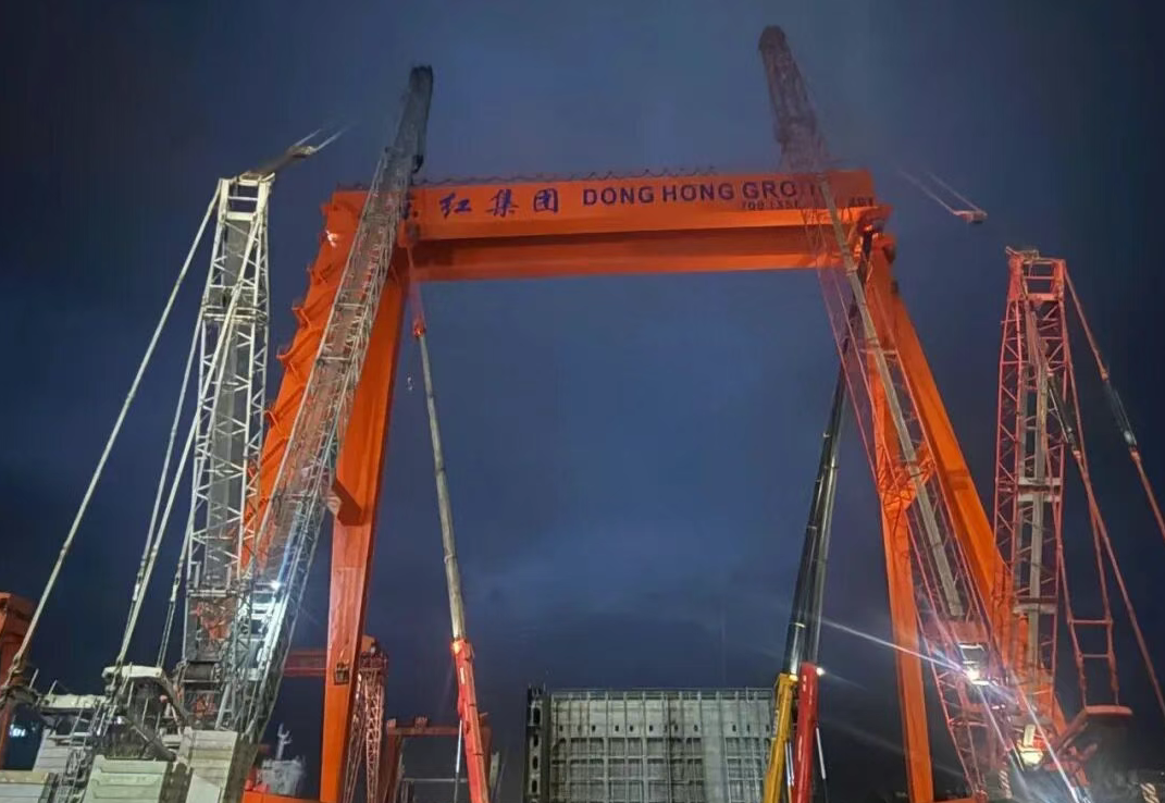 Donghong Shipbuilding has successfully installed a new 700-ton gantry crane on November 10, following the commissioning of two 600-ton, two 500-ton and one 700-ton gantry crane.