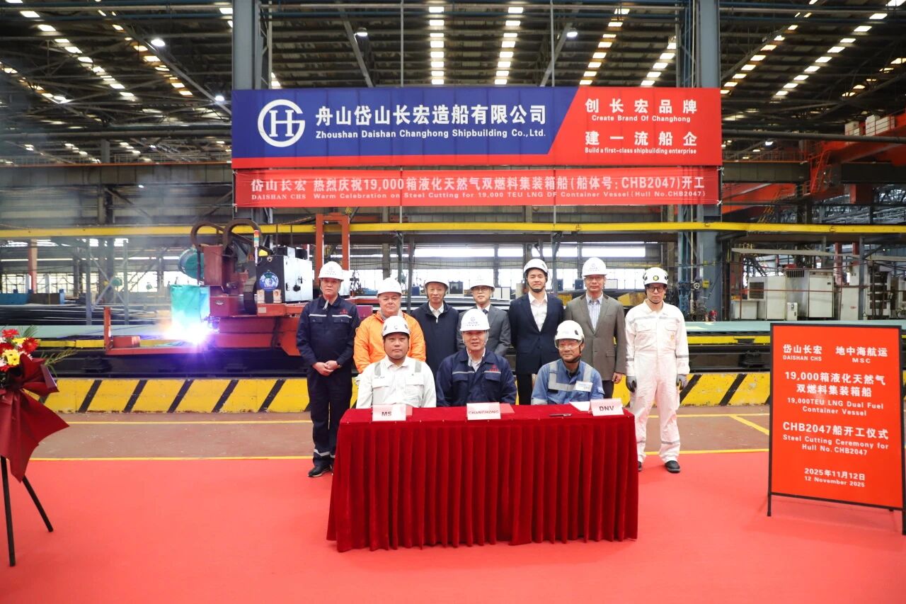 On November 12, Chinese shipbuilder Zhoushan Changhong International broke ground on the first 19,000 TEU dual-fuel container ship for MSC (Mediterranean Shipping Company) at its Daishan processing workshop.