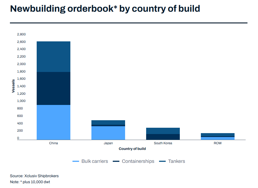 Currently, China holds a 68% market share in global bulk carrier orders, while in the tanker sector, approximately 69% of orders will be built by Chinese shipyards.
