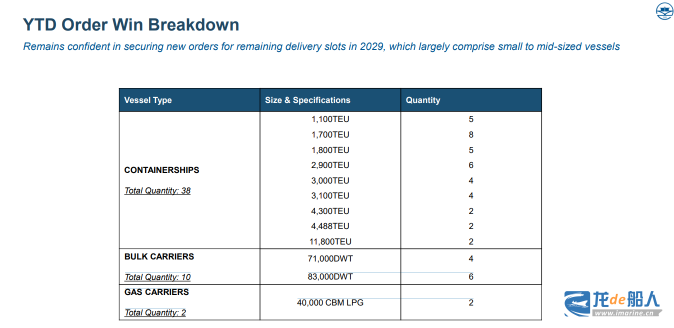 Compared to the half-year order data disclosed in August this year, Yangzijiang Shipbuilding’s third-quarter order focus shifted to the small and medium-sized container ship market.
