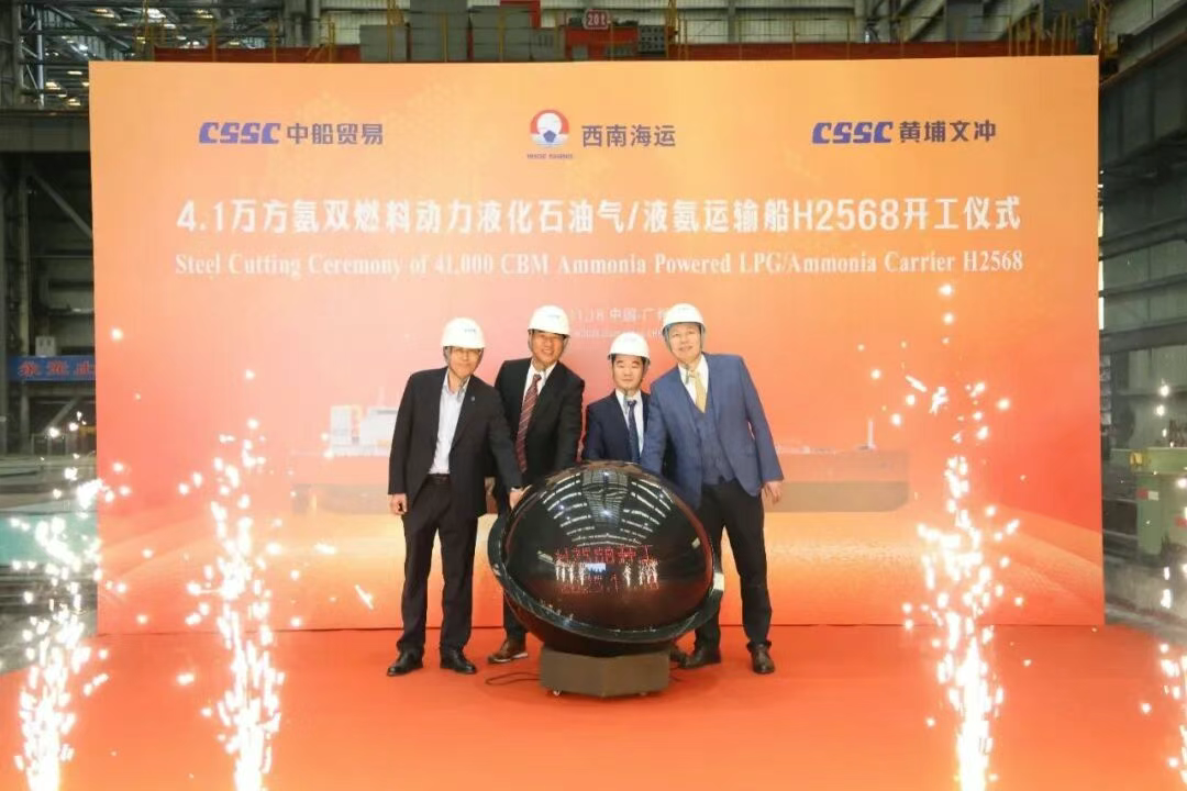 On November 18, 2025, China State Shipbuilding Corporation’s Huangpu Wenchong Shipbuilding partnered with Tianjin Southwest Maritime, Lloyd’s Register, and other relevant entities to hold the keel-laying ceremony for China’s first 41,000m³ dual-fuel ammonia LPG/liquid ammonia carrier.