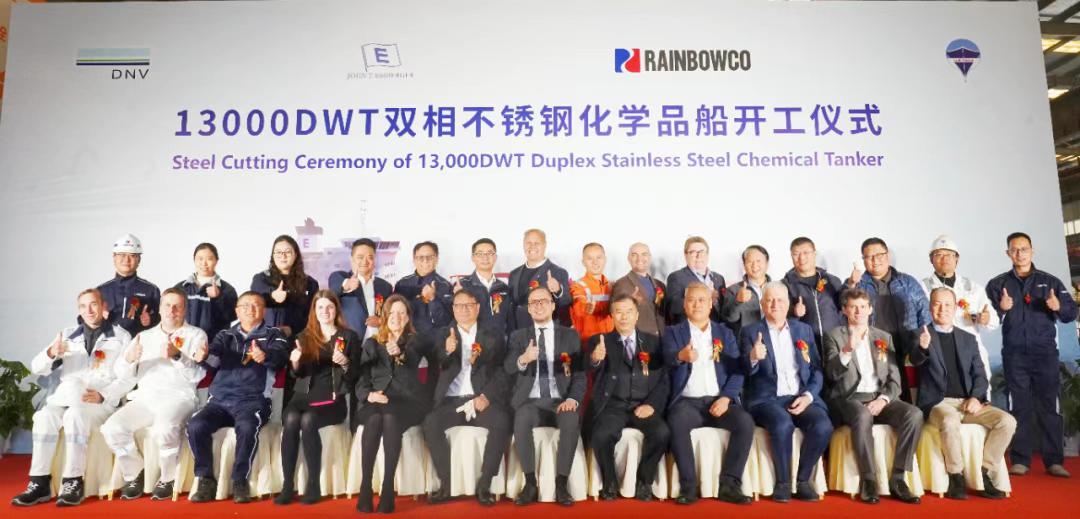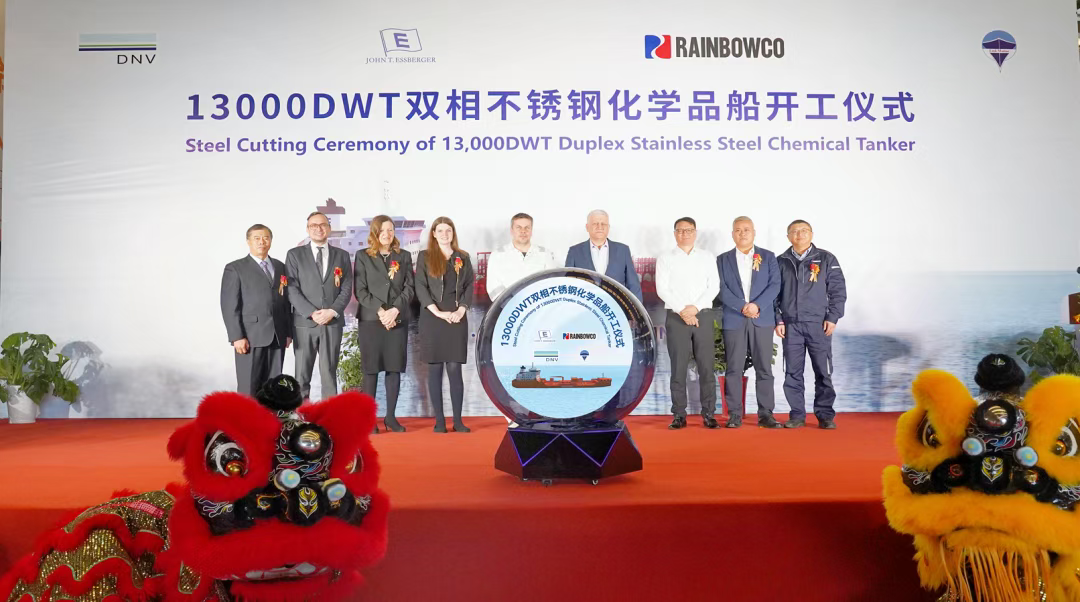 On Nov. 21st, 2025, Nantong Rainbow Offshore & Engineering Equipment Co., Ltd. (ROC), a wholly-owned subsidiary of Jiangsu Rainbow Heavy Industries, held a grand steel cutting ceremony in Qidong for ESSBERGER 13,000 DWT duplex stainless steel chemical tanker.