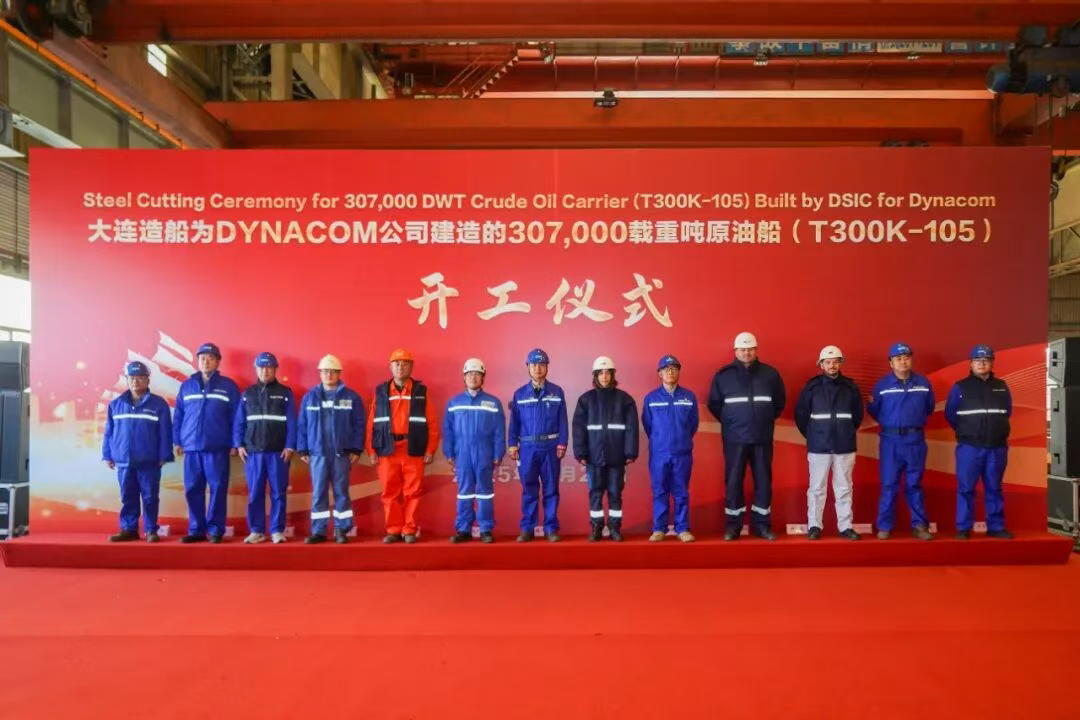 On November 20, CSSC (Tianjin) Shipbuilding under Dalian Shipbuilding Industry Co., Ltd. (DSIC) broke ground on the second 307,000 DWT crude oil carrier (Hull No.: T300K-105) for Greece’s Dynacom. This milestone signifies the shipbuilder’s sustained commitment to advancing large crude oil carrier construction and marks a significant phase in its development.