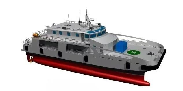 This project involves the development of one 200-ton class high-speed steel-aluminum wind power maintenance vessel and one 100-ton class high-speed all-aluminum alloy wind power maintenance vessel. Both vessels adopt a highly seaworthy small waterplane area twin-hull design, with each vessel capable of providing maintenance services for no fewer than 274 days annually. The project team innovatively designed a power system solution featuring suspended main engine placement and a large-angle transmission, significantly enhancing the safety and comfort of maintenance operations.