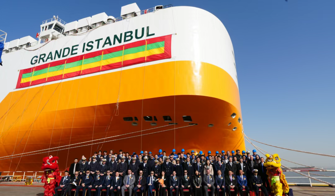 On November 28, China State Shipbuilding Corporation’s Shanghai Waigaoqiao Shipbuilding officially signed and delivered the 9,000 CEU PCTC “GRANDE ISTANBUL” to Italy’s GRIMALDI Group.