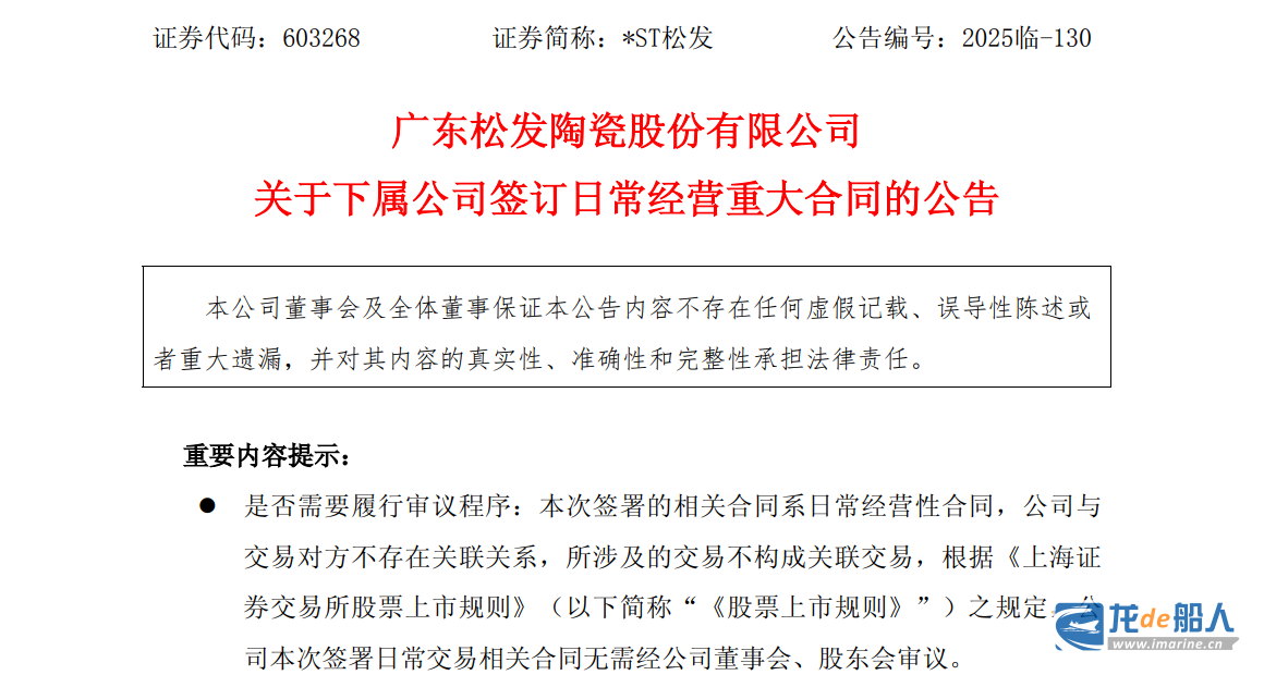 On December 3, *ST Songfa, the listed entity of Hengli Heavy Industries, issued an announcement stating that the construction contract for one Capesize bulk carrier of its subsidiary Hengli Shipbuilding (Dalian) Co., Ltd. (“Hengli Shipbuilding”) was recently signed and came into effect. The contract amount is approximately US$0.7-1 billion and is expected to be delivered in the fourth quarter of 2027.