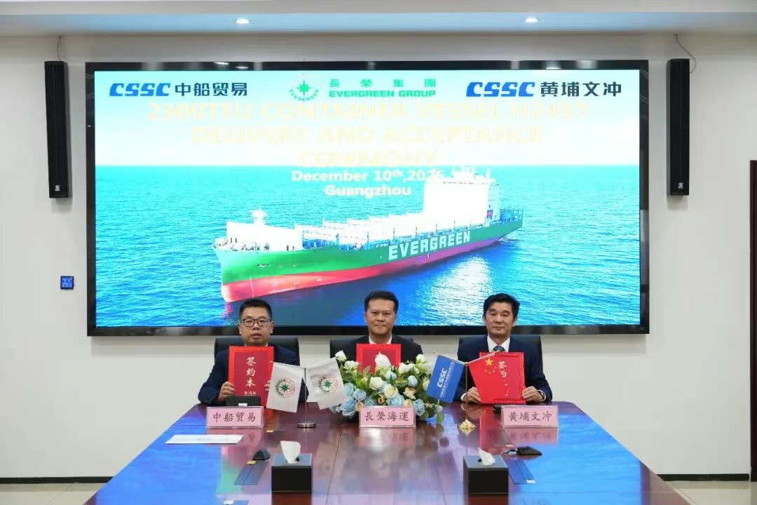 On December 10, CSSC Huangpu Wenchong Shipbuilding successfully delivered the 2,300 TEU container ship “EVER WORLD” built for Evergreen Marine Corporation. The ship departed the yard on the same day, marking a full six months ahead of the contractual schedule.