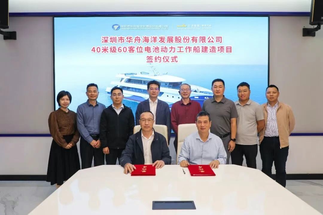 On December 12, Jianglong Shipbuilding successfully signed a contract with Shenzhen Huazhou Ocean Development for a 40-meter, 60-passenger battery-powered workboat. This collaboration not only demonstrates Jianglong Shipbuilding’s technological prowess in the field of new energy vessels but also marks a crucial step forward in the green and intelligent upgrade of coastal transportation vessels in China.