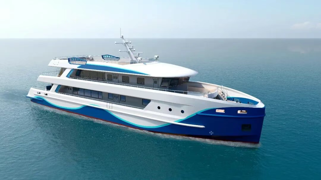 This vessel, serving as a dual-function platform for transportation and research and development in the Yantian Port area, features a steel double-deck monohull design with a total length of 43.35 meters and a beam of 8.8 meters. It is equipped with a battery-powered dual-motor, dual-propeller, and dual-rudder system, achieving a maximum speed of no less than 12 knots and a cruising range of over 10 hours at a speed of 8-10 knots, meeting the requirements for coastal Class III navigation.
