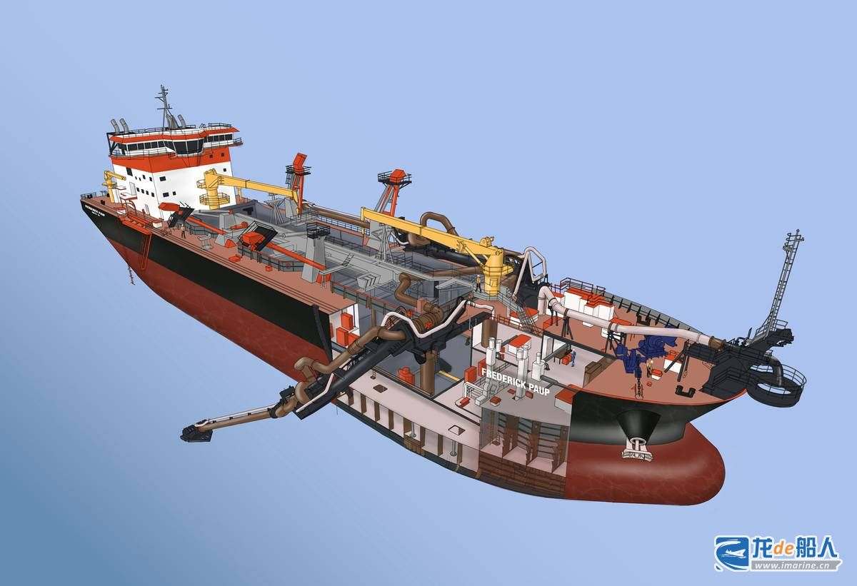 The “Frederick Paup” is the largest trailing suction hopper dredger in the United States, designed and built specifically to meet the needs of the US dredging market. It has a rated power of 25,000 horsepower, a hopper capacity exceeding 11,468 cubic meters, and is scheduled for delivery in 2025. The vessel is 128 meters long, 24.7 meters wide, and 9.9 meters deep, with a design draft of 9.45 meters and a design speed of 14 knots. It is classed by the American Bureau of Shipping (ABS) and uses a diesel-electric propulsion system equipped with Tier 4 emission standard engines, offering high fuel efficiency and excellent environmental performance.