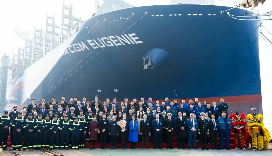On December 17, Jiangnan Shipyard held a naming and delivery ceremony for the second vessel in the “Kun” series of methanol dual-fuel large container ships built for CMA CGM Group. The ship, named “CMA CGM EUGENIE”, is the 100th container ship delivered by Jiangnan Shipyard.