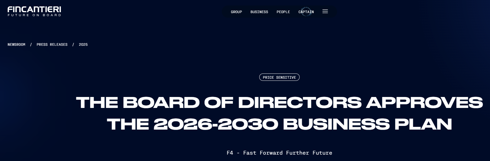 The Board of Directors of Fincantieri S.p.A., chaired by Biagio Mazzotta, examined and approved the 2026-2030 Business Plan, the sustainability strategy developed in continuity with the sustainable transition process and in support of the goals of the 2030 Agenda of the United Nations as well as the 2026-2030 Sustainability Plan.