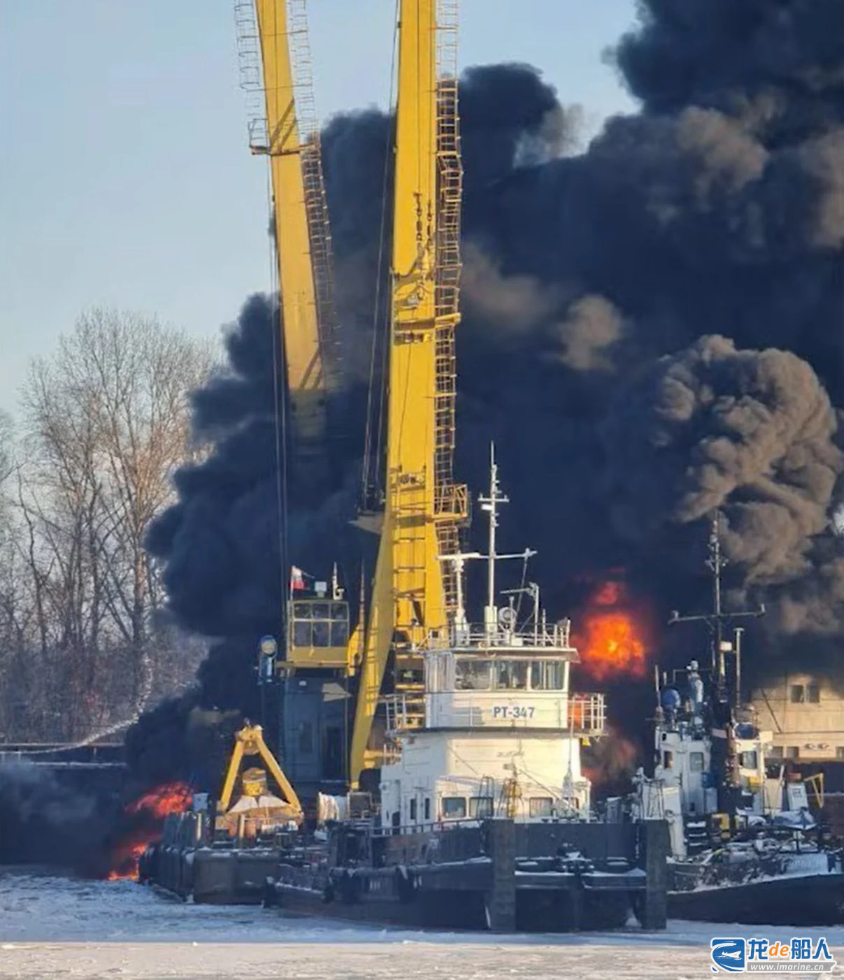 According to a report from the Russian Ministry of Emergency Situations (MES), a major fire broke out on December 23 at a ship repair shop called Borskaya Ship Repair Company. The fire was caused by a fuel leak from a crane vessel (whose specific name was not disclosed). The ship repair shop is located in Nizhny Novgorod, western Russia.