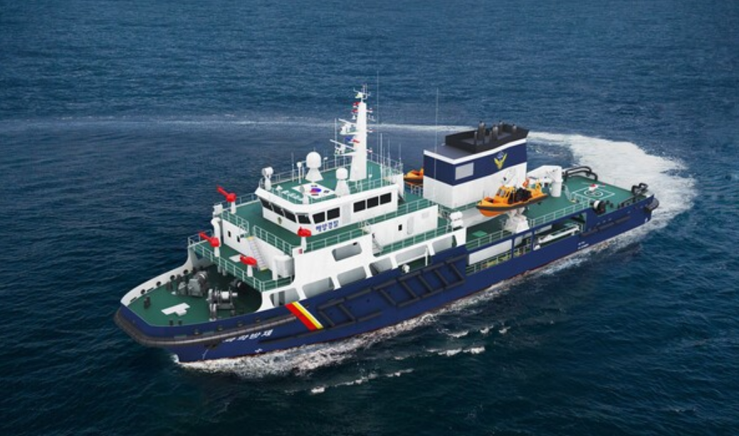 The chemical pollution control vessel contracted by HJ Heavy Industries measures 70 meters in length, 14.6 meters in beam, and 6.5 meters in draft. It boasts a maximum speed of 15.5 knots and an endurance of 1,600 nautical miles. Equipped with specialized gear for towing large distressed vessels up to 30,000 tons, it can perform search and rescue operations and firefighting tasks in adverse weather conditions with wave heights ranging from 2.5 to 4 meters.