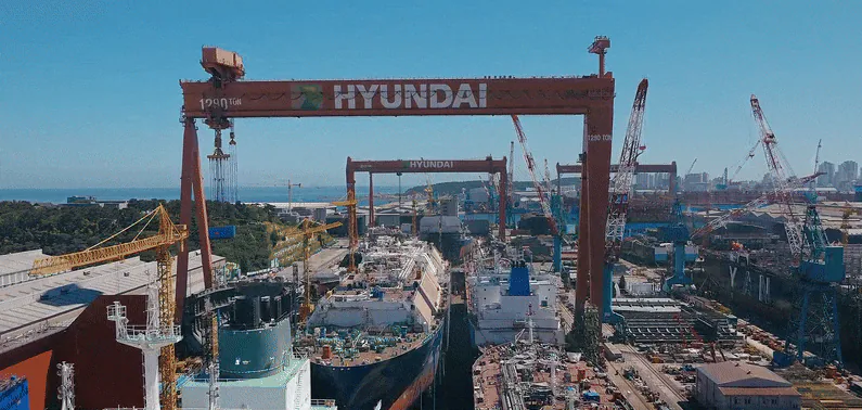 An HD Hyundai Heavy Industries official stated, “With 14 total docks, around 30 ships are currently under construction, operating nonstop. Approximately 40 ships are also docked at the quays undergoing outfitting and sea trials. Due to space constraints, we are conducting double berthing—mooring two ships side by side—to proceed with work.”