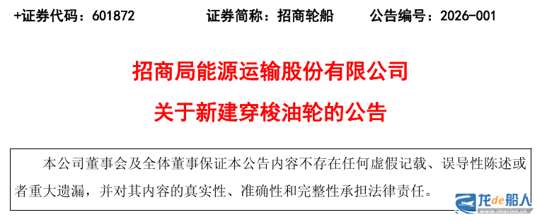 On January 5, China Merchants Energy Shipping (CMES), a shipping company controlled by China Merchants Group, issued an announcement regarding the construction of new shuttle tankers, announcing that it would invest nearly RMB 1.8 billion (approximately US$258 million) to order up to two shuttle tankers.