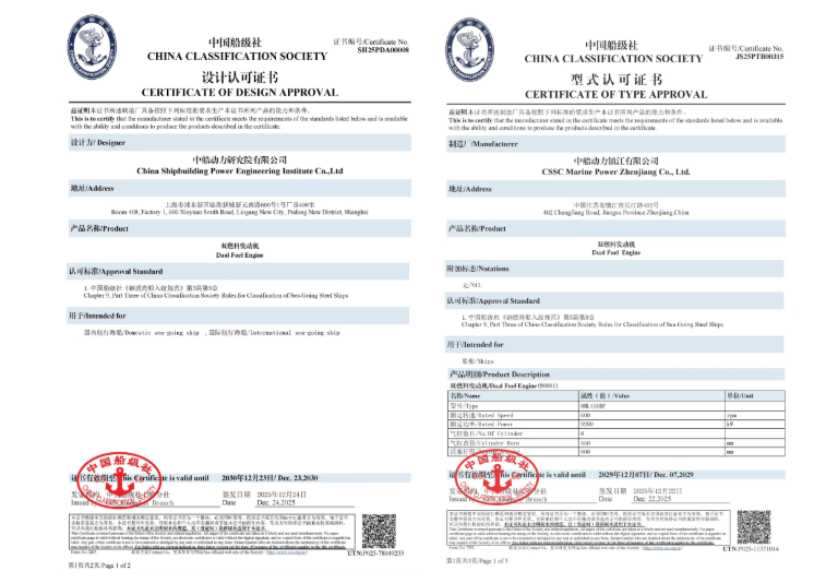 Recently, CSSC Power (Group) Corporation Ltd. (CPGC), a subsidiary of China State Shipbuilding Corporation (CSSC), has successfully obtained both design approval and type approval from China Classification Society (CCS) for its 8ML450DF engine.