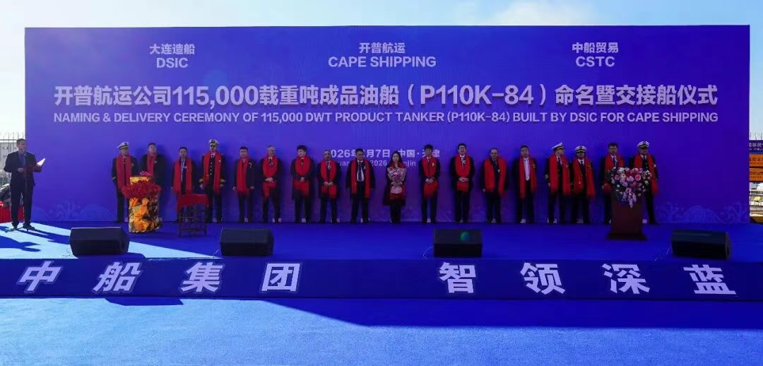 On January 7, CSSC (Tianjin) Shipbuilding—a subsidiary of Dalian Shipbuilding Industry Corporation (DSIC)—delivered the Cape Olympus, the first 115,000 DWT product tanker built for Greece’s CAPE SHIPPING, 83 days ahead of schedule, marking a robust start to the company’s production operations in the new year.