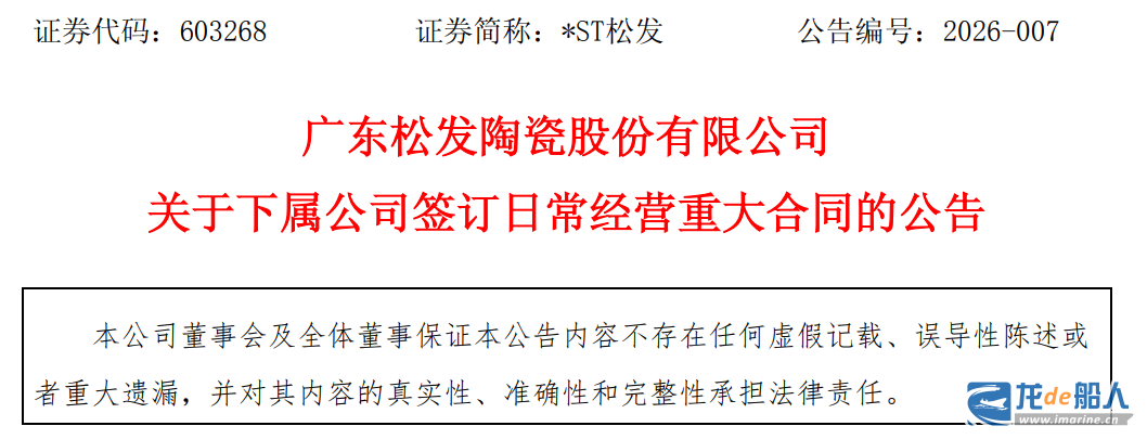 On January 14, *ST Songfa announced that its subsidiary, Hengli Shipbuilding (Dalian) Co., Ltd., recently signed and came into effect a contract to build two 306,000 DWT Very Large Crude Carriers (VLCCs). The total contract value is approximately US$200-300 million, and based on this, the estimated cost per vessel is approximately US$100-150 million. Delivery is expected to take place in the second half of 2028.