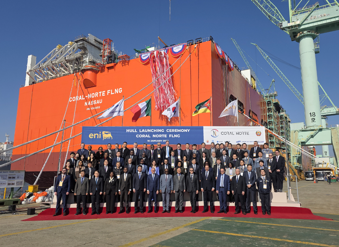 On January 16, the Coral Norte floating liquefied natural gas (FLNG) unit, built by Samsung Heavy Industries for Italian energy giant Eni, was launched at the Geoje Shipyard in South Gyeongsang Province, South Korea. The launch ceremony was attended by Estevão Pele, Minister of Mineral Resources and Energy of Mozambique, along with representatives from Eni, Samsung Heavy Industries and other relevant companies.