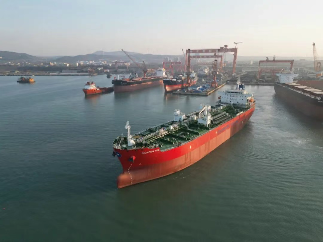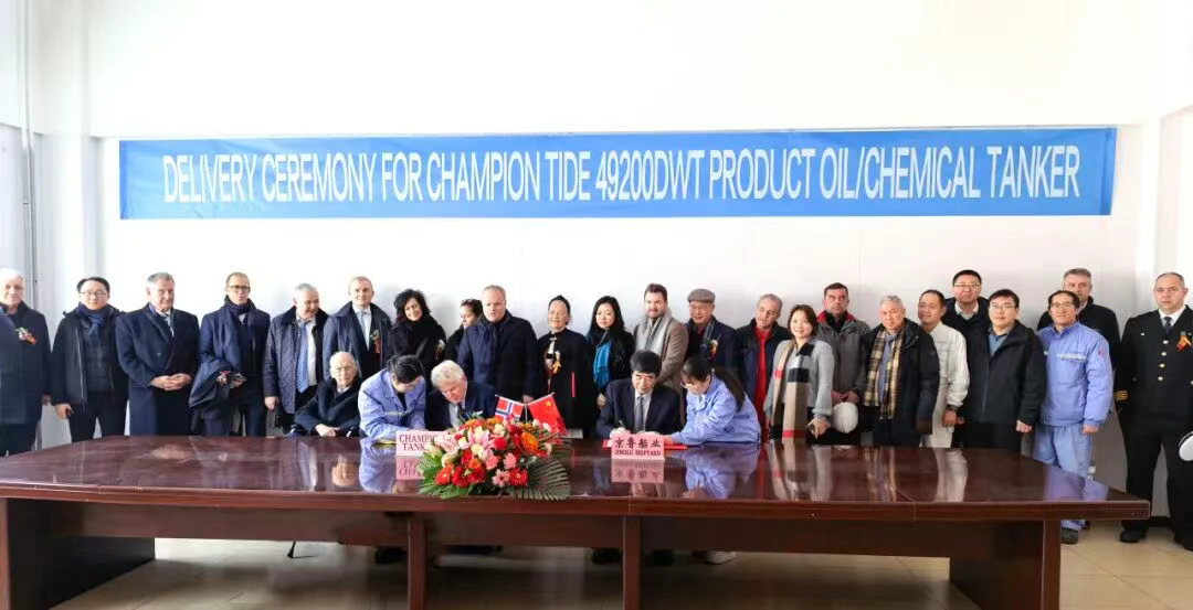 On January 22, the MR chemical tanker “CHAMPION TIDE” built by Penglai Zhongbai Jinglu Ship Industry Co., Ltd. (Jinglu Shipyard) for CHAMPION TANKERS AS was successfully delivered 107 days ahead of the contract delivery date.