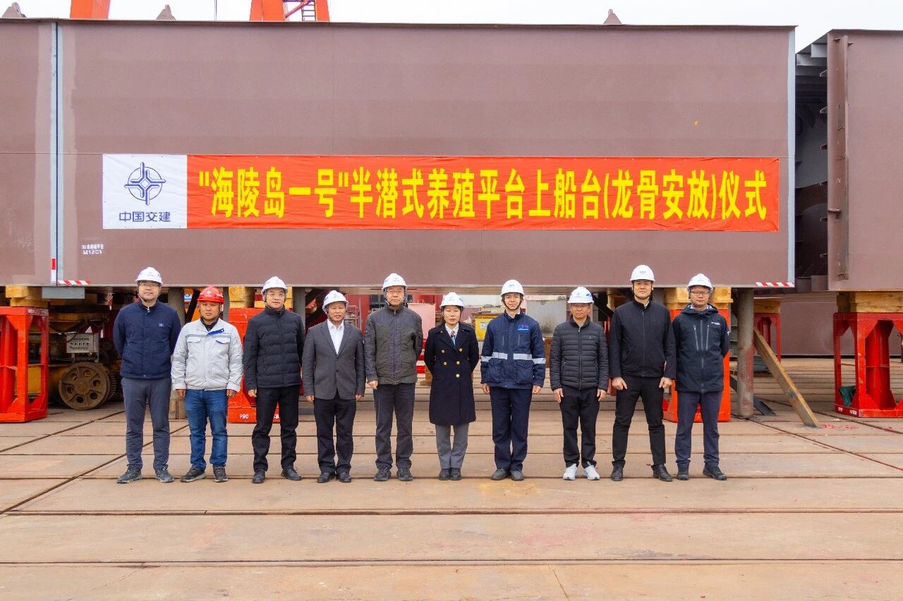 Recently, Jiangmen Hangtong Shipbuilding Company held the keel-laying ceremony for the Hailing Island No.1 semi-submersible aquaculture platform, marking the official kickoff of the project’s full-scale construction. The platform is being built by the company under the auspices of the Fourth Harbor Engineering Co., Ltd., a subsidiary of China Communications Construction Co., Ltd. (CCCC).