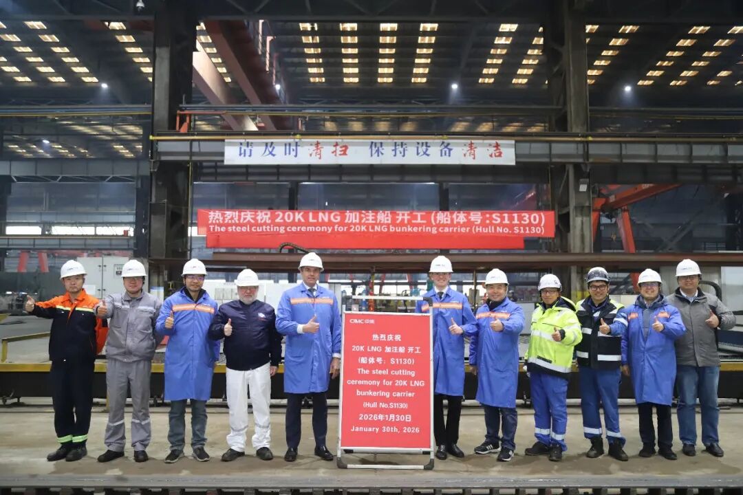 On January 30, Nantong CIMC Sinopacific Offshore & Engineering Co., Ltd. (CIMC SOE) held a steel-cutting ceremony for a 20,000 m³ LNG carrier and bunkering vessel constructed for Somtralux SA.