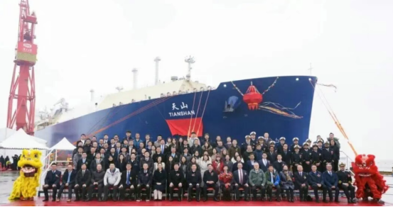 On January 30, the Tian Shan, the 60th large liquefied natural gas (LNG) carrier built by Hudong-Zhonghua Shipbuilding, was named and delivered two months ahead of schedule.