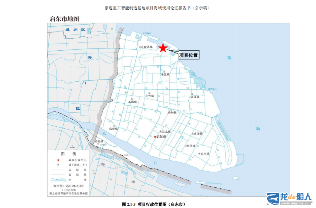 According to a report released by the Ministry of Natural Resources, Haomai Heavy Industry plans to construct a supporting wharf project for its intelligent manufacturing base at the Lvsi Operation Area of Tongzhou Bay Port in Nantong, located west of the project site. This will involve building an 80,000-ton outfitting wharf featuring two 80,000-ton outfitting berths and one 80,000-ton heavy-lift berth, along with corresponding supporting facilities.