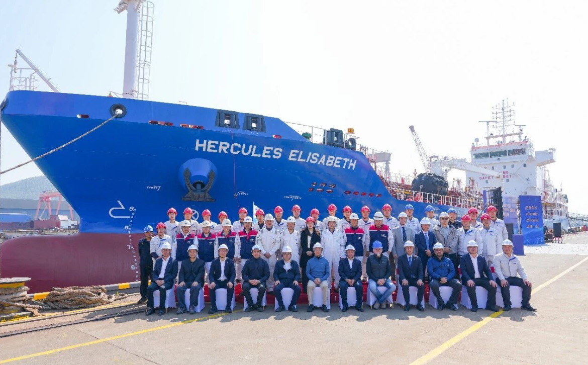 On February 2, Jiangmen Hangtong Shipbuilding of CCCC Fourth Harbor Engineering (Jiangmen Hangtong Shipbuilding) held a delivery ceremony for the 7,700 DWT oil/chemical tanker “HERCULES ELISABETH,” built for marine fuel supplier Peninsula Petroleum.