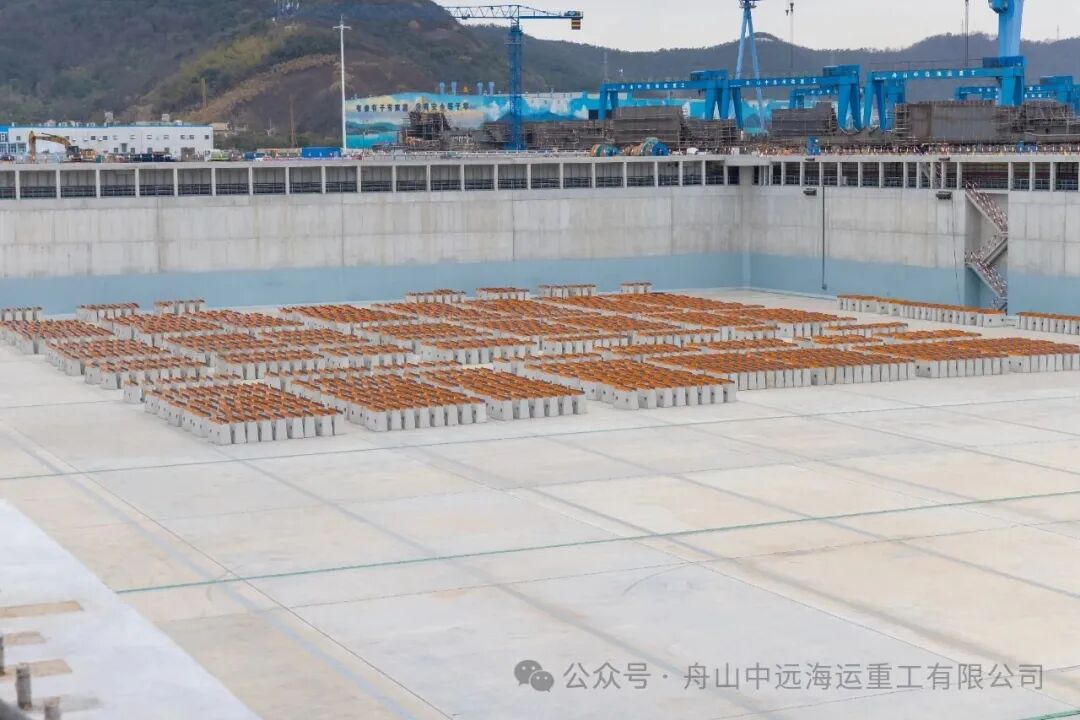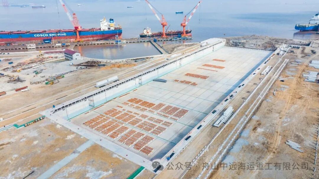 Dock No. 4 represents a crucial infrastructure investment by COSCO Shipping Heavy Industry (Zhoushan) to optimize its production capacity layout and secure long-term development. Designed for vessels up to 300,000 DWT, the dock’s main structure measures 430 meters in length, 120 meters in width, and 15.2 meters in depth, with a total floor area of 51,600 square meters. Upon commissioning, the facility will primarily undertake repair and construction projects for new energy vessels as well as high-tech, high-performance, and high-value-added ships. This initiative will significantly advance the company’s green and low-carbon transformation while enhancing its competitiveness in the global market.
