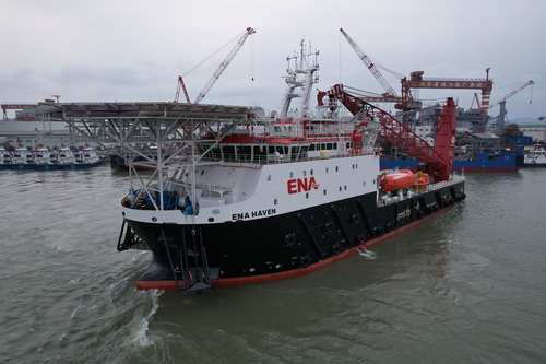 On February 7, 2026, the 85-metre offshore maintenance vessel ENA HAVEN, built by Jiangsu Zhenjiang Shipyard (Group) for a Singaporean shipowner and boasting world-class advanced specifications, was successfully completed, delivered and set sail.